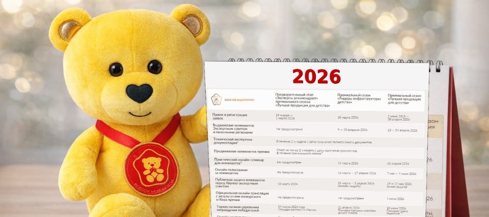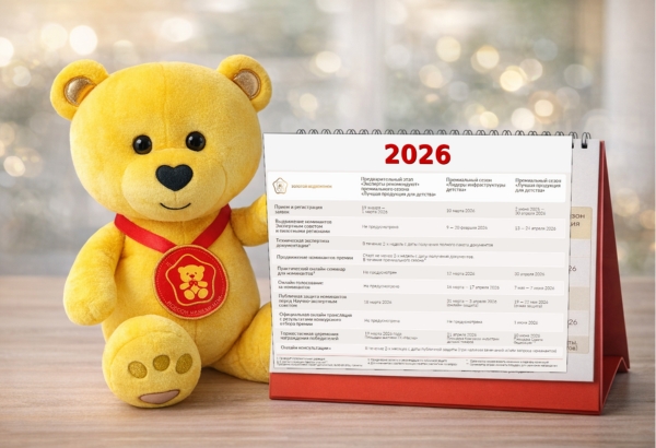 XVI Национальная премия «Золотой медвежонок» продолжает приём заявок на сезоны «Лидеры инфраструктуры детства», «Лучшая продукция для детства», а также в Предварительный этап «Эксперты рекомендуют» премиального сезона «Лучшая продукция для детства».